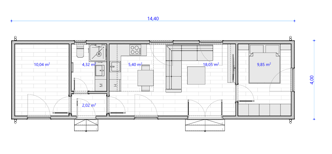 A közel 50 m²-es alapterületével a Zafír Plusz ideális választás családoknak, pároknak, vagy akár egy exkluzív vendégháznak is, ahol a kényelem és a funkcionalitás az első.