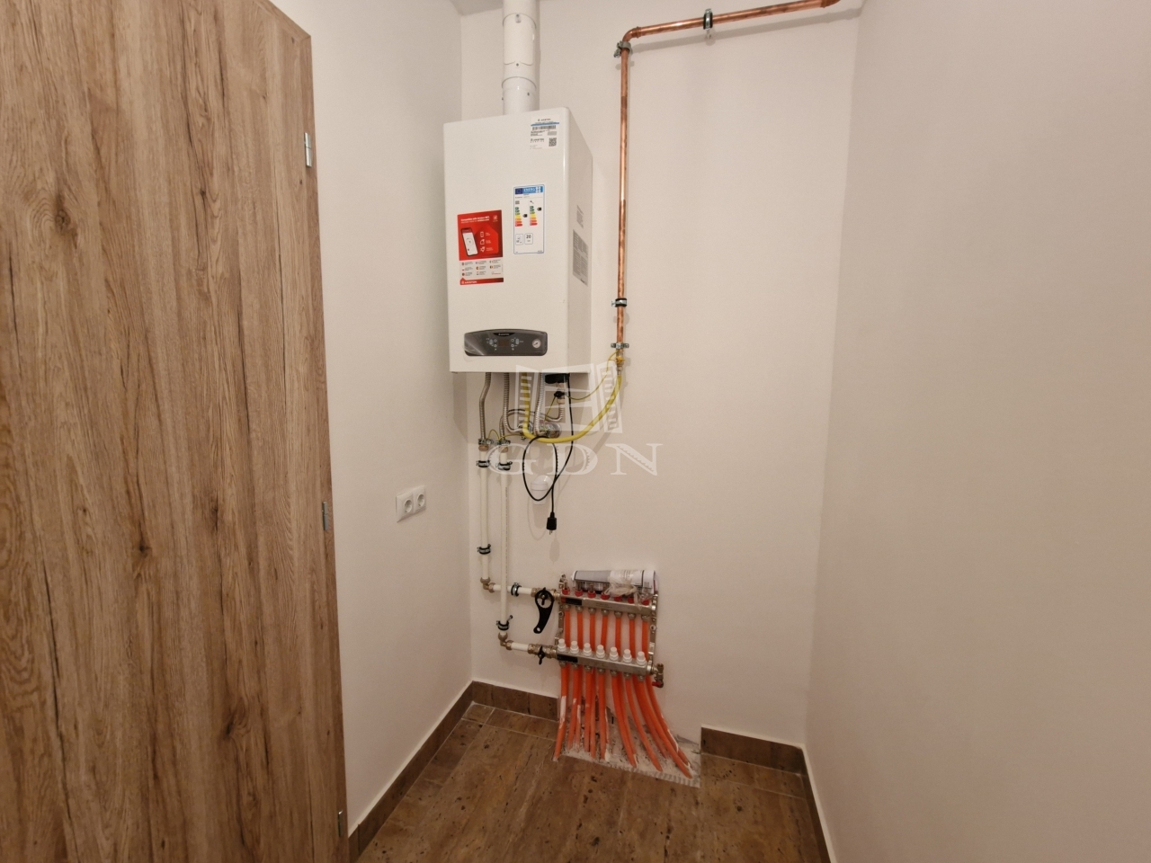 VEKA ALPHALINE) a belső ajtók modul méretűek, magyar szabványos, dekor fóliázott kivitelben. Bejárati ajtó: műanyag, öt ponton záródó, a tűzvédelmi előírásoknak és a MABISZ