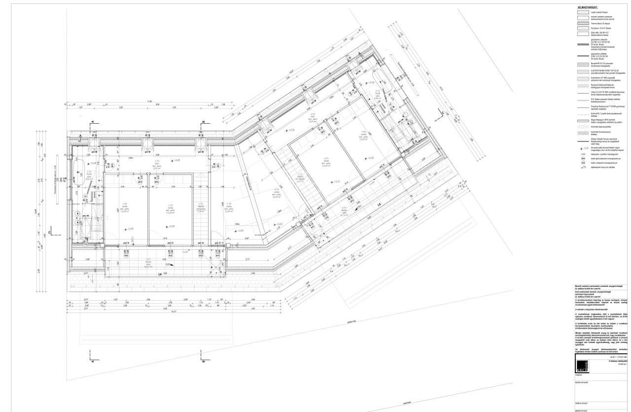 •15cm-es vasbeton falazat 20cm (kívül 15cm, belül 5cm) grafitos polisztirol szigeteléssel és Ytong válaszfalakkal
