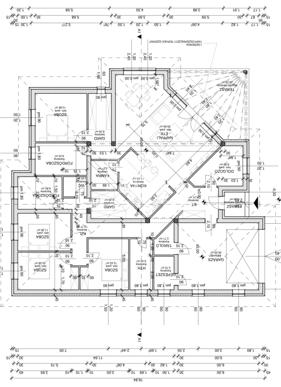 - külső főfalak 30 cm vastag égetett vázkerámia tégla,