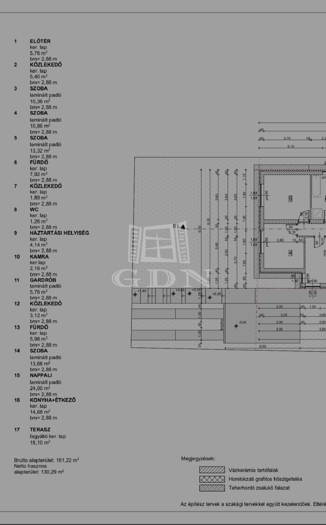 - 30-as Porotherm tégla falazat + 10cm grafit szigetelés,