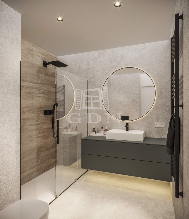 A lakás hőellátását és hűtését teljesen megújuló energiaforrással, a külső levegő hőenergiájának felhasználásával terveztük, amelyet osztott „Split” rendszerű hőszivattyúval hasznosítunk hűtési, fűtési és használati melegvíz termelés célra. A hőszivattyúk elektromos ellátása GEO tarifás áram vételezéssel történik. Ezenkívül a lakás magas színvonalú Smart Home rendszerrel van felszerelve.