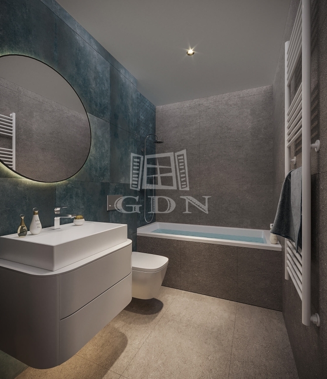 A lakás hőellátását és hűtését teljesen megújuló energiaforrással, a külső levegő hőenergiájának felhasználásával terveztük, amelyet osztott „Split” rendszerű hőszivattyúval hasznosítunk hűtési, fűtési és használati melegvíz termelés célra. A hőszivattyúk elektromos ellátása GEO tarifás áram vételezéssel történik. Ezenkívül a lakás magas színvonalú Smart Home rendszerrel van felszerelve.