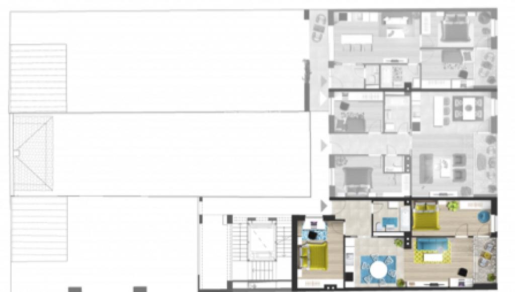 Pesti Broadway izgalmas fejlesztésének lakása, mely egy klasszikus épület korhű megújításával párhuzamosn újonnan kialakított moder épületrészében található. Az új épületrészek kialakításával párhuzamosan az egész épület megújul és modern felvonó kerül beépítésre.