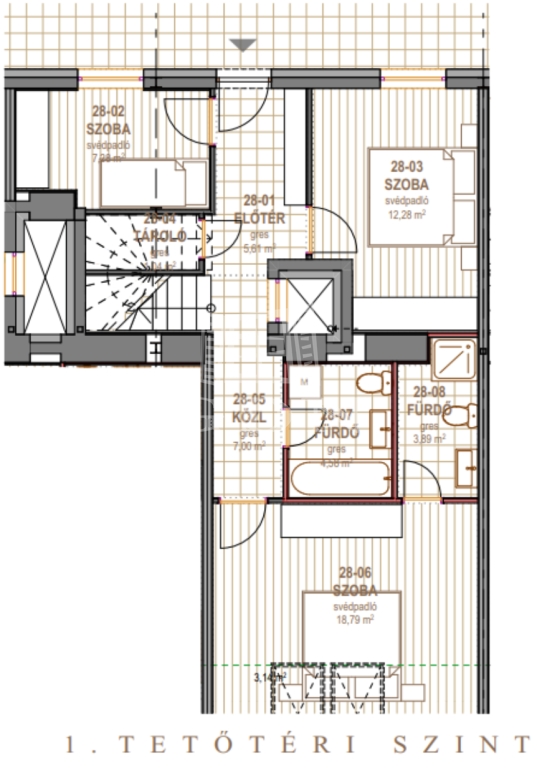 Az enteriőrt személyre szabottan alakítjuk ki, így otthonod megfelel az igényeidnek és kifejezi egyediségedet .Az apartman három hálószobához két és fél fürdőszoba tartozik, valamint egy saját tetőterasz is, ahonnan lenyűgöző panoráma tárul elénk. A pontos beosztás az alaprajzon látható.