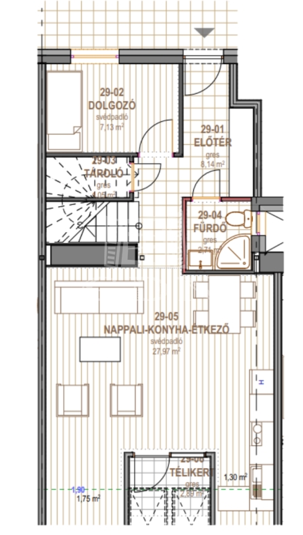 Az apartmanban a konyha és a nappali együtt alkot egy egységet.