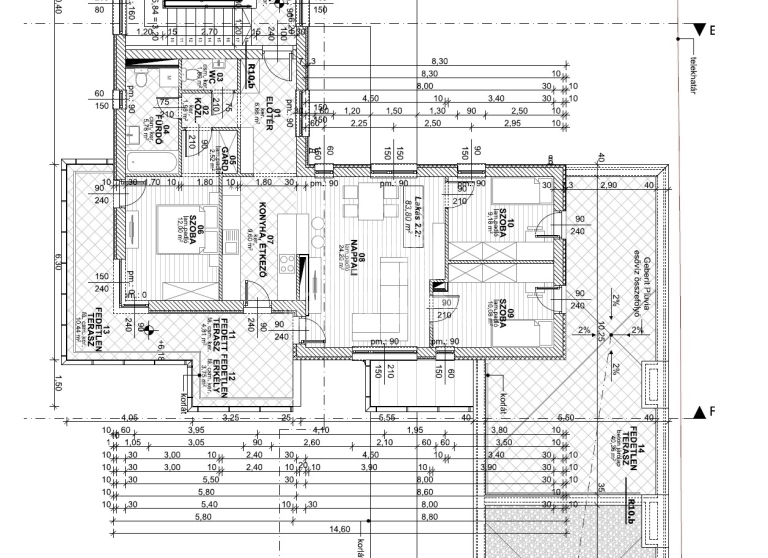 2/2 lakás: 83,8 m2|Fedett Terasz 4,81 m2| Fedetlen Terasz 54,57 m2|Elosztása: