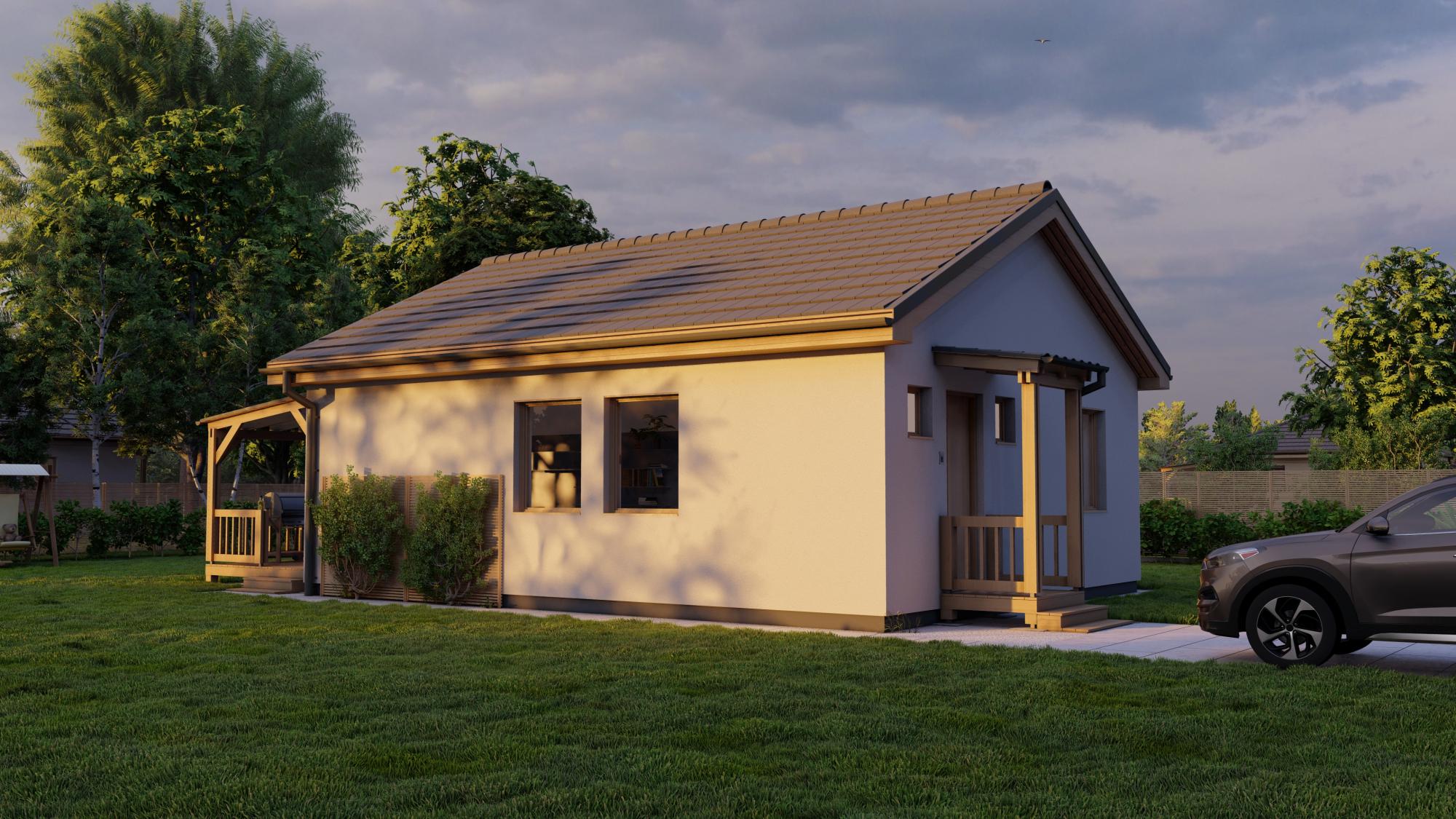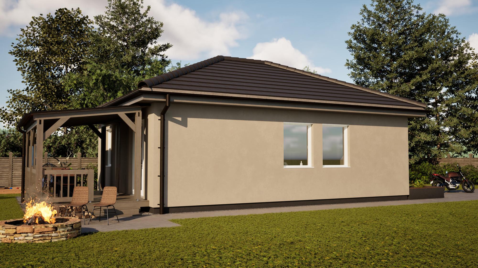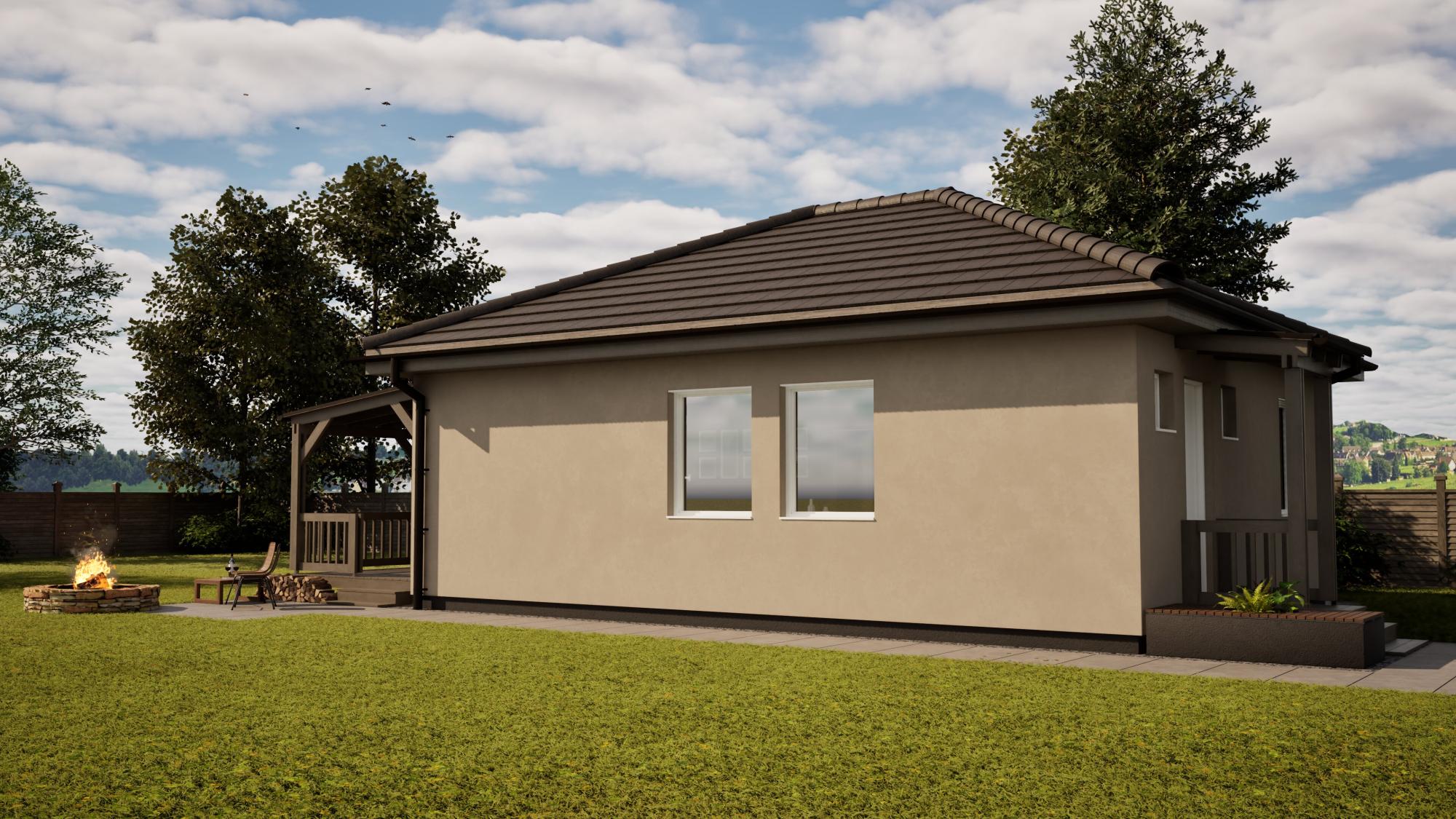 ✔ Fedett terasz az alapárban: Egy 5x3 méteres, faszerkezetű, cserépfedésű terasz is a csomag része.